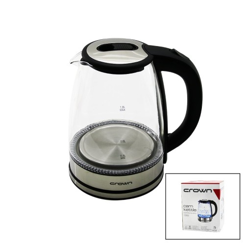 CAM - LEDLİ KETTLE 1.8LT 1500W ÇELİK TABAN - KROM KAPAK 360° GÖVDE PLASTİK KULP
