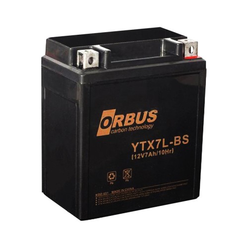 AKÜ 12 VOLT 7 AMPER ORBUS YTX7L-BS ASİT İÇİNDE KARBON BİSİKLET AKÜSÜ