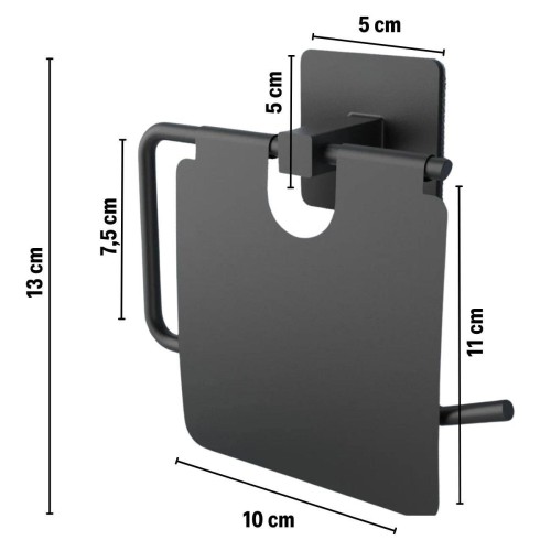 Kendiliğinden yapışkanlı siyah paslanmaz metal kapaklı tuvalet kağıtlığı aparatı, şık tasarımıyla banyonuza modern bir dokunuş katarken aynı zamanda pratik bir kullanım sunar. Tuvalet kağıdınızı hijyenik bir şekilde saklamak ve düzenlemek için ideal bir çözümdür.