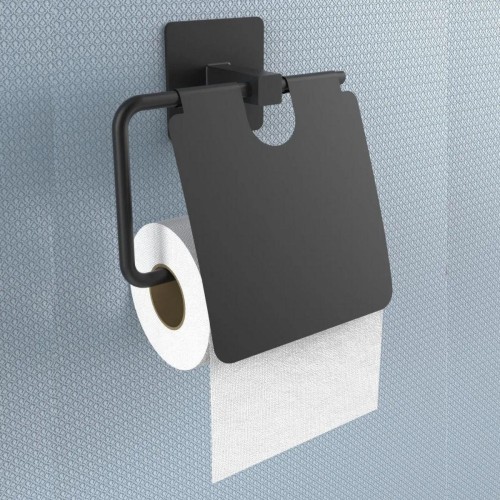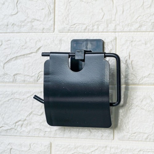 Kendiliğinden Yapışkanlı Siyah Paslanmaz Metal Kapaklı Tuvalet Kağıtlığı Aparatı