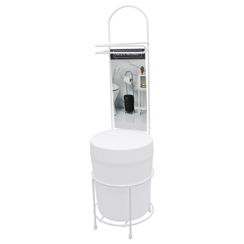 BEYAZ METAL AYAKLI WC KAĞITLIK YUVARLAK PLASTİK KOVALI