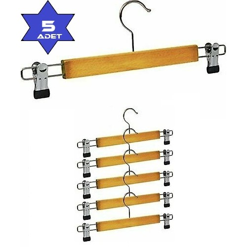• Ahşap Pantolon ve Etek Askısı Mandallı Klipsli Askı (5 Adet)