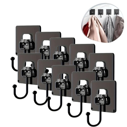 10 Adet Güçlü Yapışkanlı Siyah Duvar Askısı – Delmeden, Vida Kullanmadan Pratik Çözüm!
