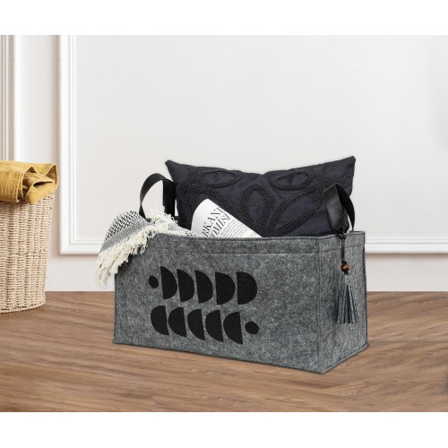 Felted Deri Kulplu Keçe Dekoratif Saklama Sepet, Deri Kulplu Keçe Organizer Düzenleyici Saklama Kutusu, Dikdörtgen Model Koyu Gri 42*27*24 Cm