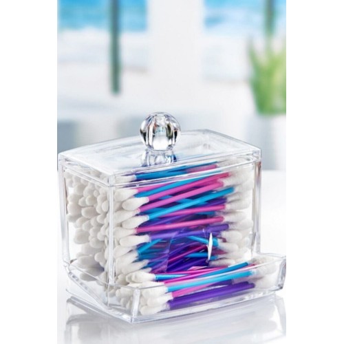 -Şeffaf üstten kapaklı şık tasarım, Altta kulak temizleme çubuklarının alınma bölmesi vardır.