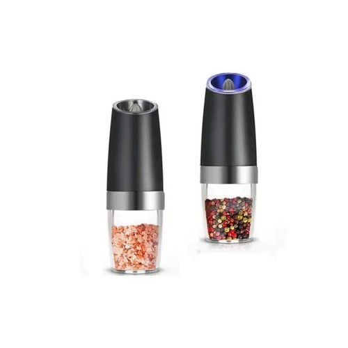 - 2 Adet Siyah Pilli Işıklı Mavi Led Işıklı Otomatik Tuz Karabiber Baharat Değirmeni Öğütücü