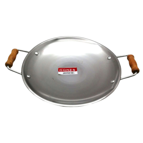 Çap: 32 cm Yükseklik: 4.5 cm Derindir ve kullanışlıdır. Odun ateşinde, kömür ateşinde ve ocakta kullanmaya uygundur. Ters çevrilerek bombe dışa doğru getirilip gözleme yufka katmer için kullanılabilir. Temizlemesi kolaydır.