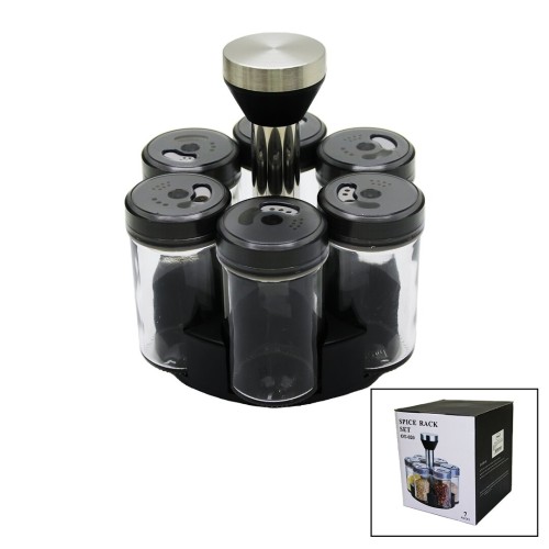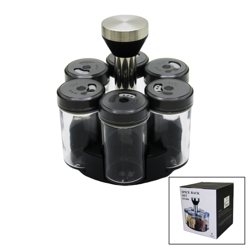 6 PARÇA YUVARLAK CAM - PLASTİK KAPAK TULUK - BAHARATLIK DÖNER STANDLI
