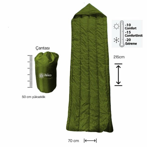 Ürün Özellikleri: 0 ve 20 derece için kullanıma uygun Hafif ve az yer kapla Pamuk dolgulu malzeme Komple fermualı yapı sayesinde kolay ve rahat kullanım Dış yüzey ve iç astar, uyku sırasında rahatsızlık ve sentetik hissi vermeyen yumuşak malzemeden yapılmıştır Taşıma çantası ile beraber gönderilmektedir. 215 X 70CM