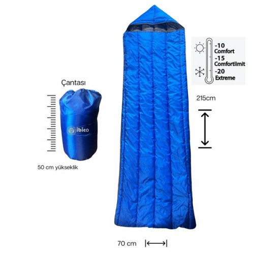 Ürün Özellikleri: 0 ve 20 derece için kullanıma uygun Hafif ve az yer kapla Pamuk dolgulu malzeme Komple fermualı yapı sayesinde kolay ve rahat kullanım Dış yüzey ve iç astar, uyku sırasında rahatsızlık ve sentetik hissi vermeyen yumuşak malzemeden yapılmıştır Taşıma çantası ile beraber gönderilmektedir. 215 X 70CM