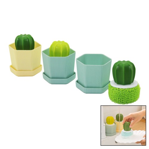 KAKTÜS MODEL SAPLI SERT - RENKLİ PLASTİK TEL BULAŞIK FIRÇASI RENKLİ PLASTİK TABAKLI HAZNE