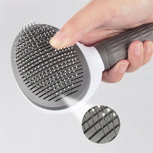 Kedi Köpek Tüy Toplayıcı Kendini Temizleyebilen Ergonomik Rahat Evcil Hayvan Tarağı Gri