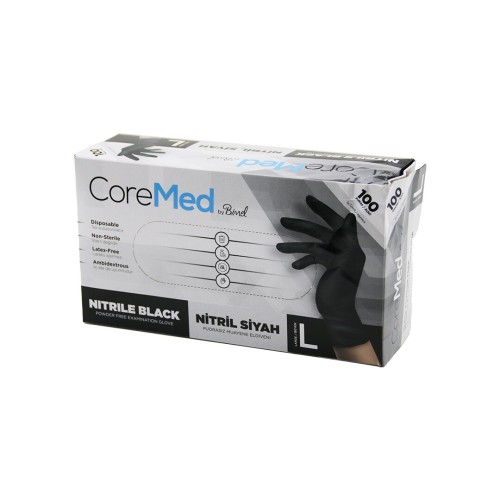 L BEDEN SİYAH PUDRASIZ NİTRİL MUAYENE ELDİVENİ 100LÜ