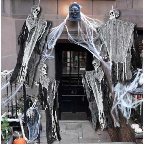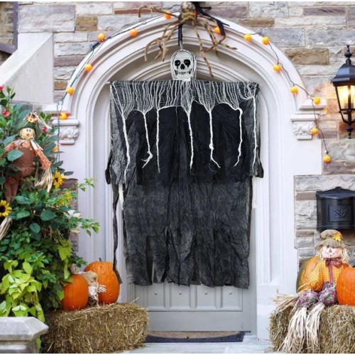 Ürpertici Kuru Kafa Korku Hayalet Saçaklı Dekor 90x50 cm