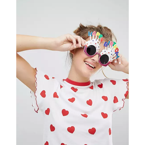 Happy Birthday Yazılı Beyaz Fuşya Renk Parti Gözlüğü