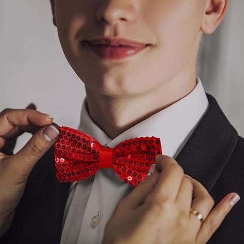 Stil sahibi ve iddialı bir görünüm için Gece Işıltısı Kırmızı Payetli Pullu Papyon tam size göre! Bu zarif aksesuarla unutulmaz bir izlenim bırakın. ????
