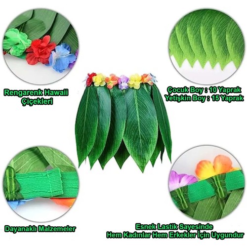 Çocuklarınızın enerjik ve neşeli havasını yansıtan bu şık tropikal esintili Hawaii yapraklı parti eteği, yaz etkinlikleri, doğum günü partileri, plaj gezileri ve daha pek çok özel an için mükemmel bir tercih! Canlı renkler ve tropikal desenler ile miniklere özgürce hareket edebilecekleri rahat bir şıklık sunuyor.