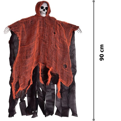 Led Işıklı Kahkaha Atan Sesli Sensörlü Ürpertici Kuru Kafa Korku Hayalet Saçaklı Dekor 90x50 cm