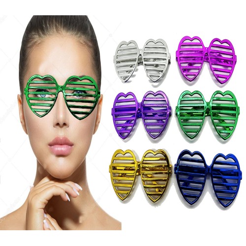 Metalize Ekstra Parlak Kalp Panjur Parti Gözlüğü 6 Renk 6 Adet
